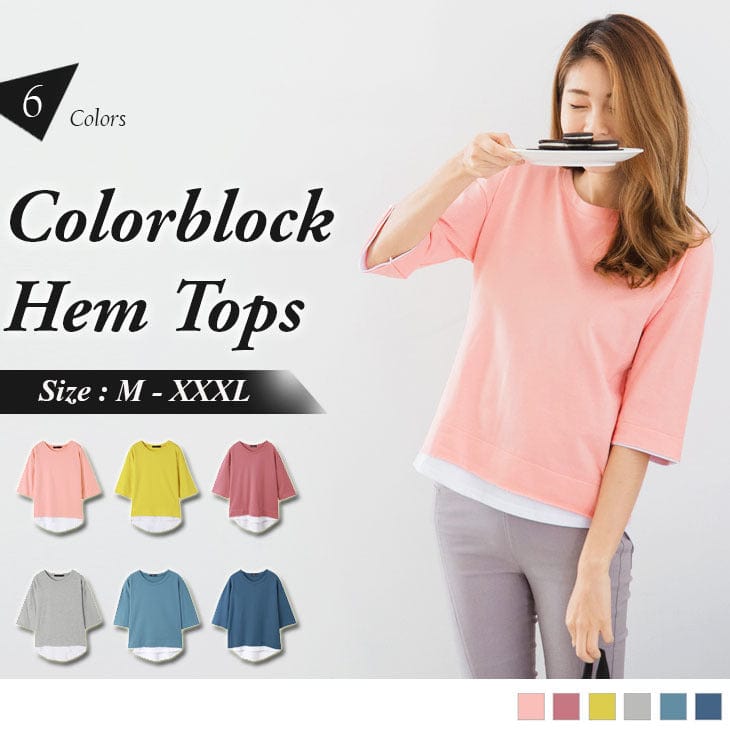 SHORT SLEEVE COLORBLOCK HEM TOPS