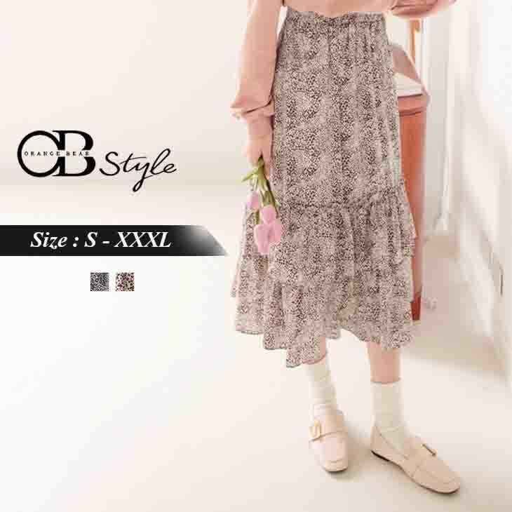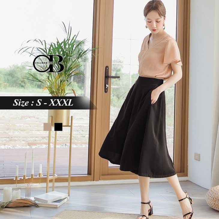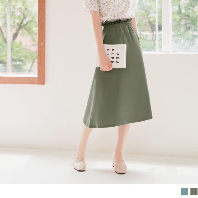 RUFFLE ELATSIC WAIST S-LINE MIDI SKIRTS