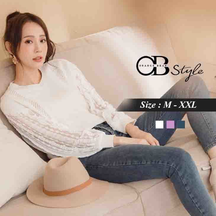 ROUND NECK LACED SLEEVE KNIT TOPS