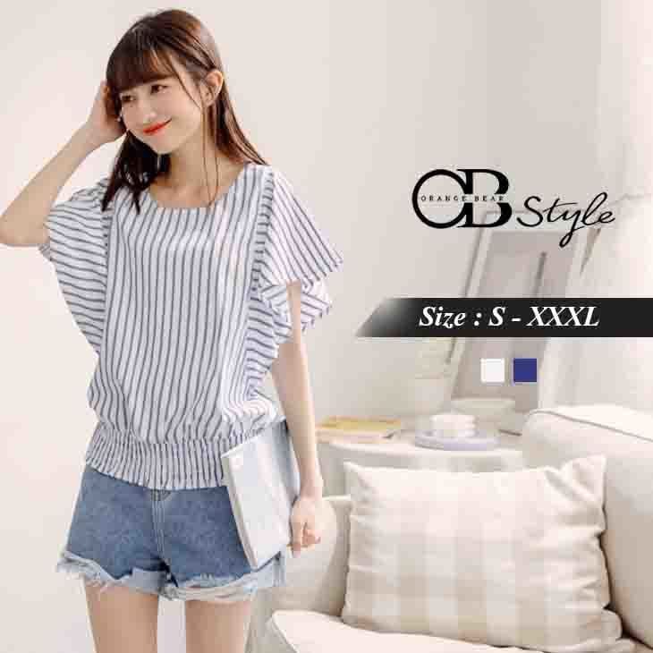 RUFFLE SLEEVE STRIPED TOPS