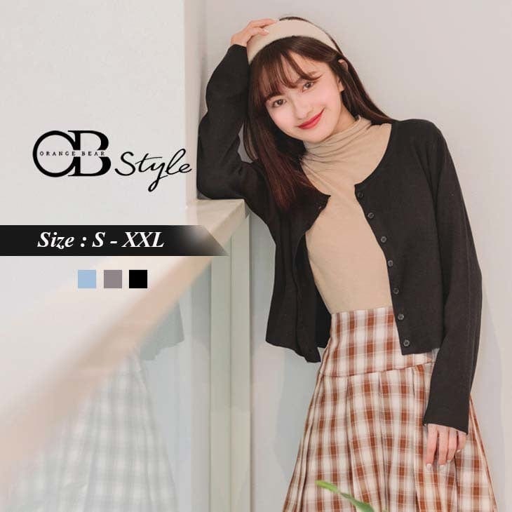 ROUND NECK PURE COLOR KNIT CROP BUTTONS TUNIC JACKETS