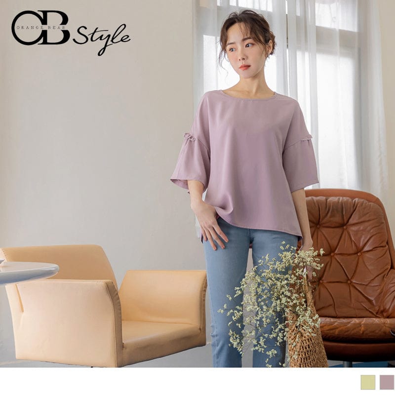 RUFFLE SLEEVE PLEATED TOPS