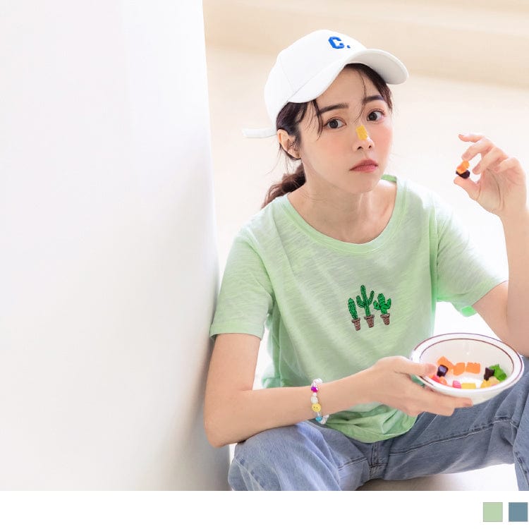ROUND NECK EMBROIDERED SHORT SLEEVE TOPS