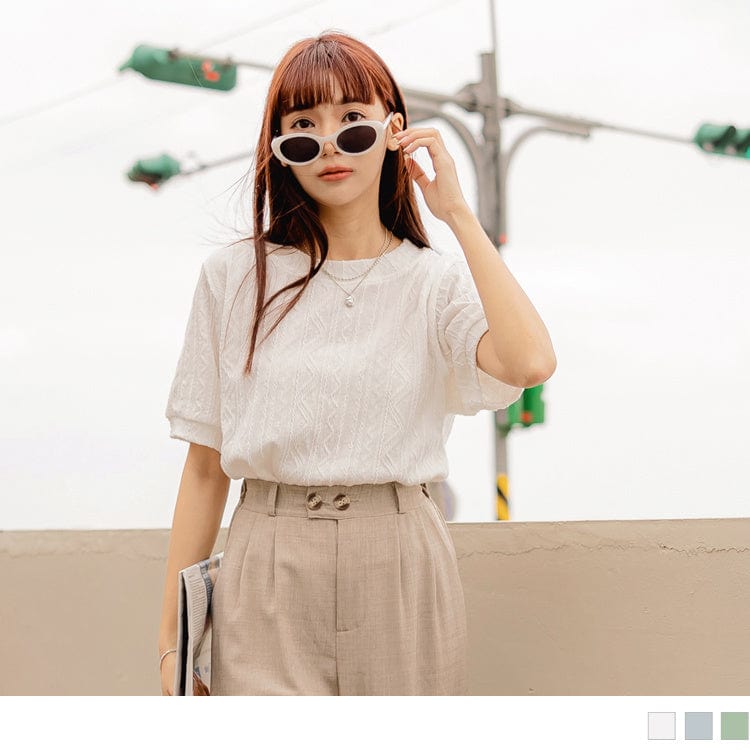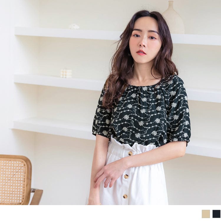 ROUND NECK SHORT SLEEVE EMBROIDERED TOPS
