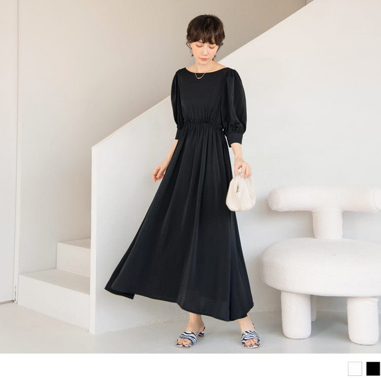 ROUND NECK A-LINE ELASTIC WAIST MAXI DRESS