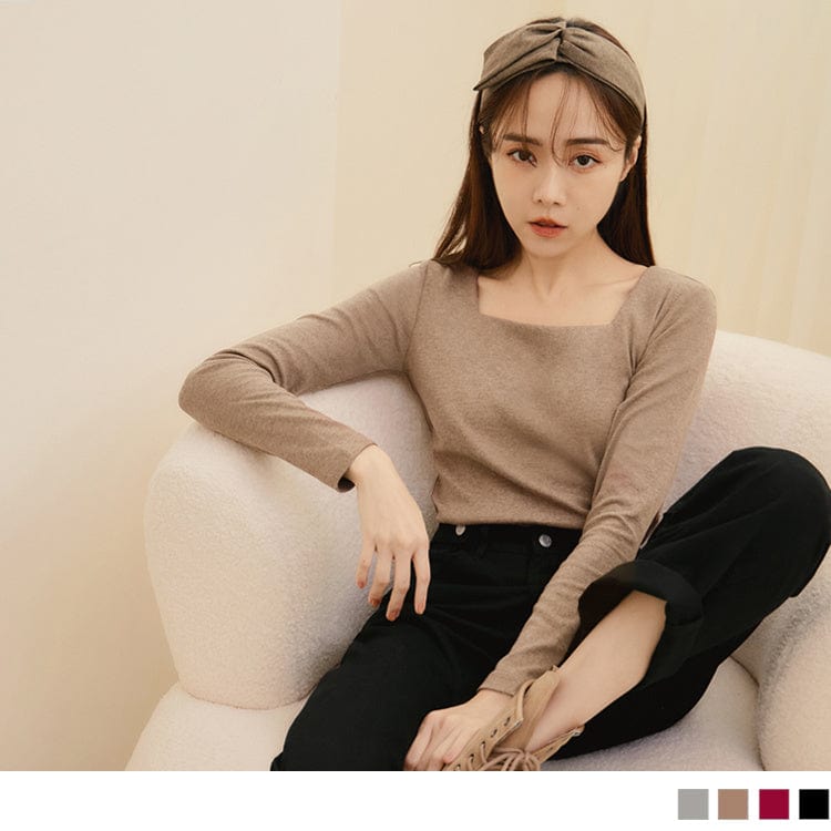 PURE COLOR KEEP WARM SQUARE NECK LONG SLEEVE TOPS