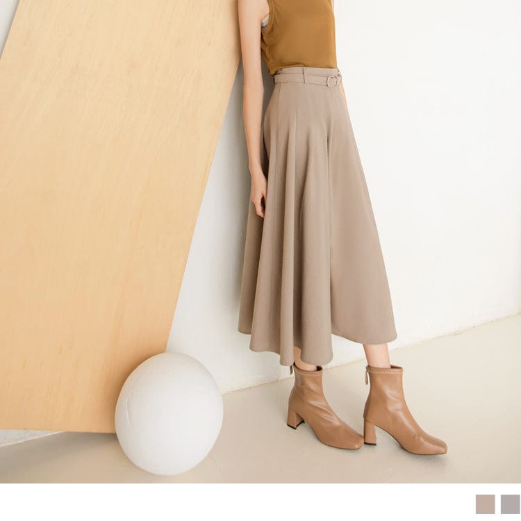 PURE COLOR PLEAT A-LINE MAXI SKIRTS WITH BELT