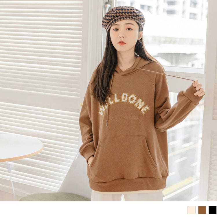 ROUND NECK LONG SLEEVE LETTER PRINTED HOODED TOPS