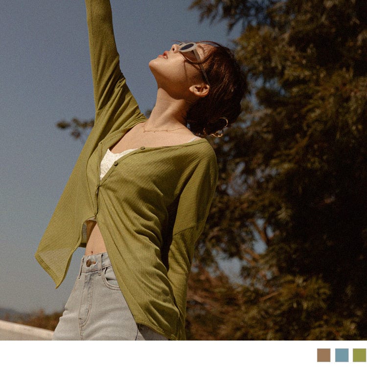 PURE COLOR TRANSPARENT TUNIC CARDIGANS TOPS