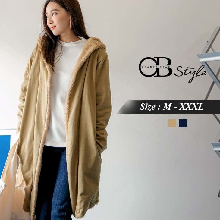 PURE COLOR KEEP WARM LONGLINE HOODED JACKETS