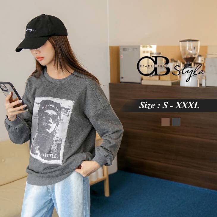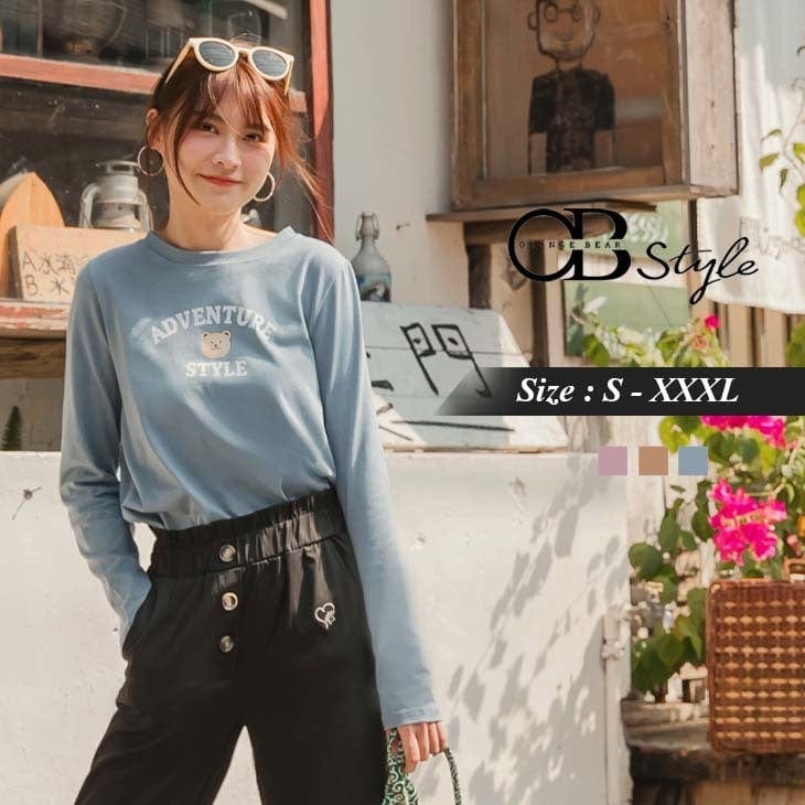 ROUND NECK LETTER PRINTED COTTON LONG SLEEVE TOPS
