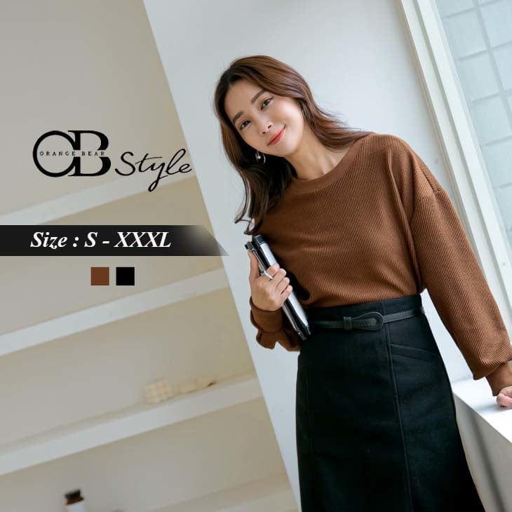 PURE COLOR ROUND NECK KNIT LONG SLEEVE TOPS