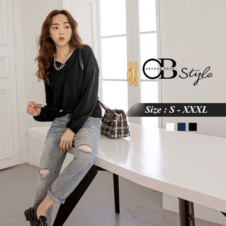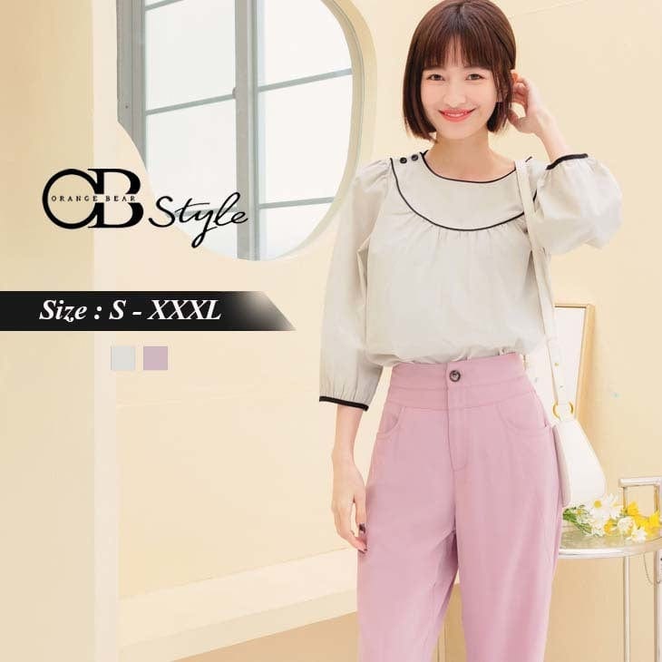 ROUND NECK COTTON 3/4 SLEEVE PUFF SLEEVE TOPS