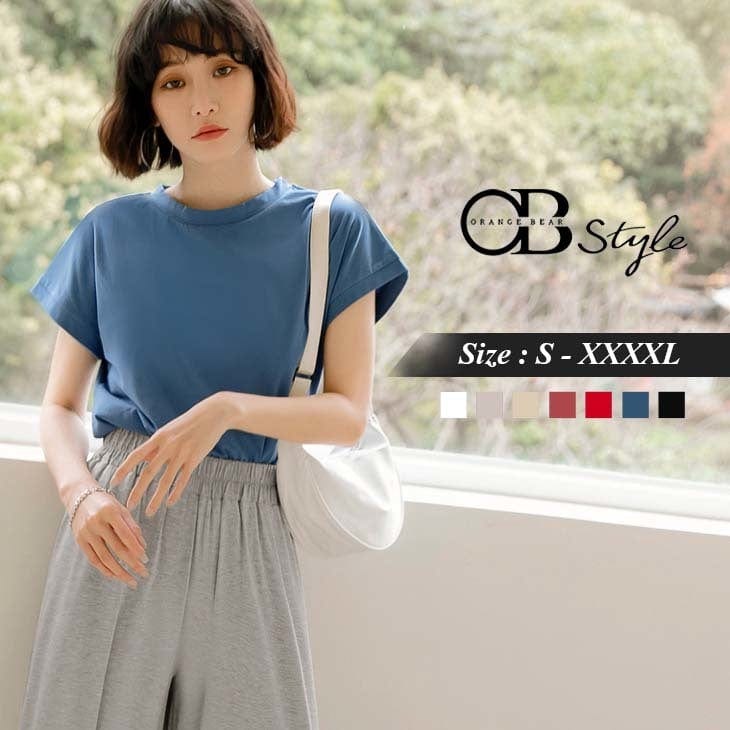 ROUND NECK PLAIN WIDE SHORT SLEEVE TOPS