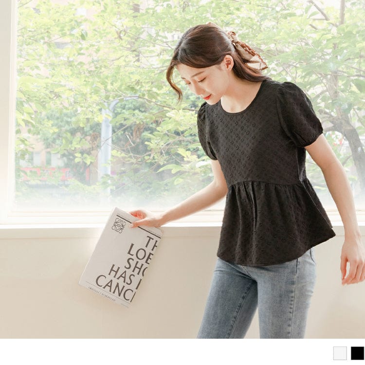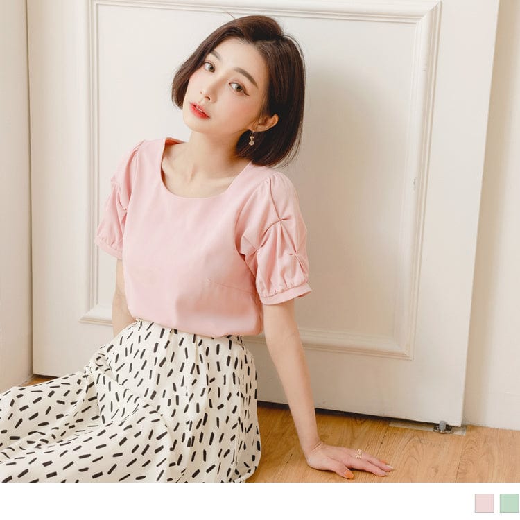 ROUND NECK PUFF SLEEVE SHORT SLEEVE TOPS