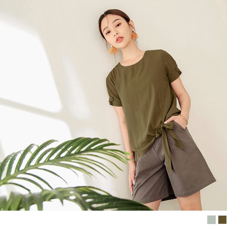 ROUND NECK SHORT SLEEVE BOWKNOT HEM TOPS