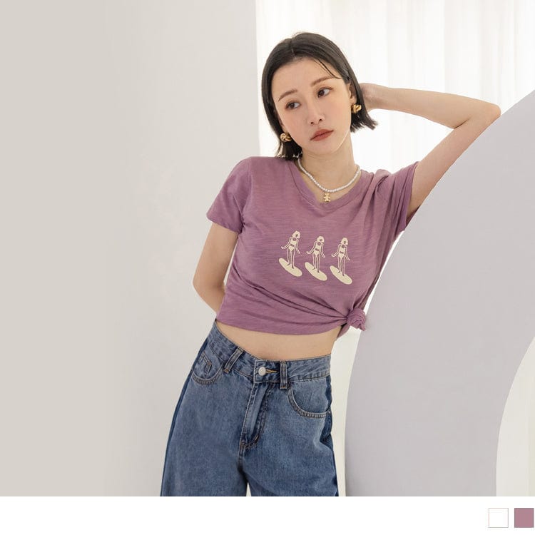 ROUND NECK SHORT SLEEVE COTTON PRINTED TOPS