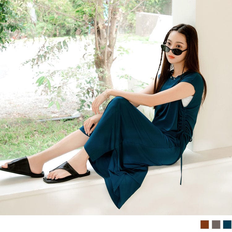 ROUND NECK DROP SHOULDER SHORT SLEEVE MAXI DRESS