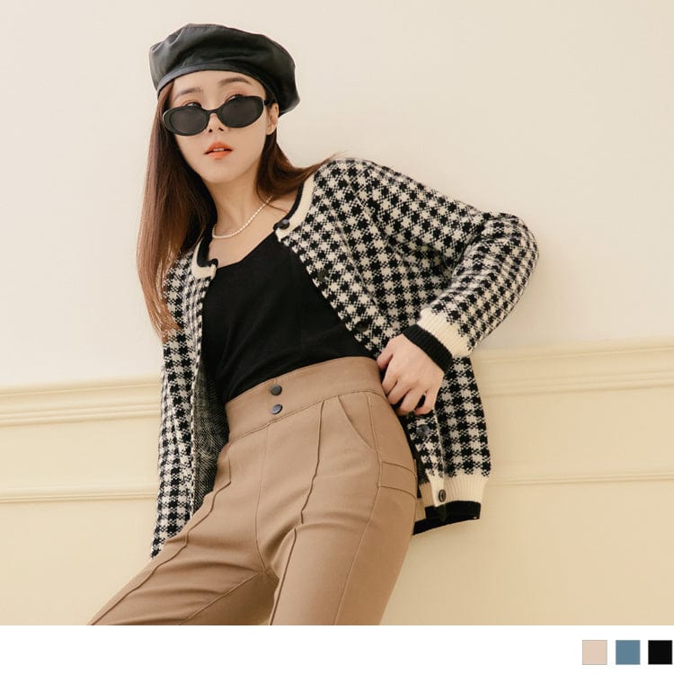 ROUND NECK CHECKED KEEP WARM KNIT TUNIC FUR JACKETS