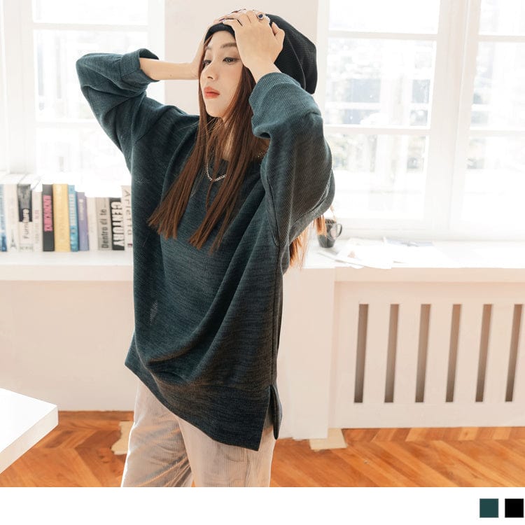 ROUND NECK DROP SHOULDER LONG SLEEVE LONGLINE TOPS