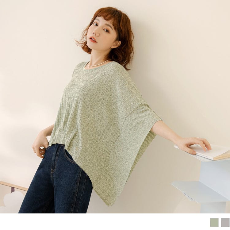 ROUND NECK BATWINGS SLEEVE KNIT PIT STRIPE TOPS