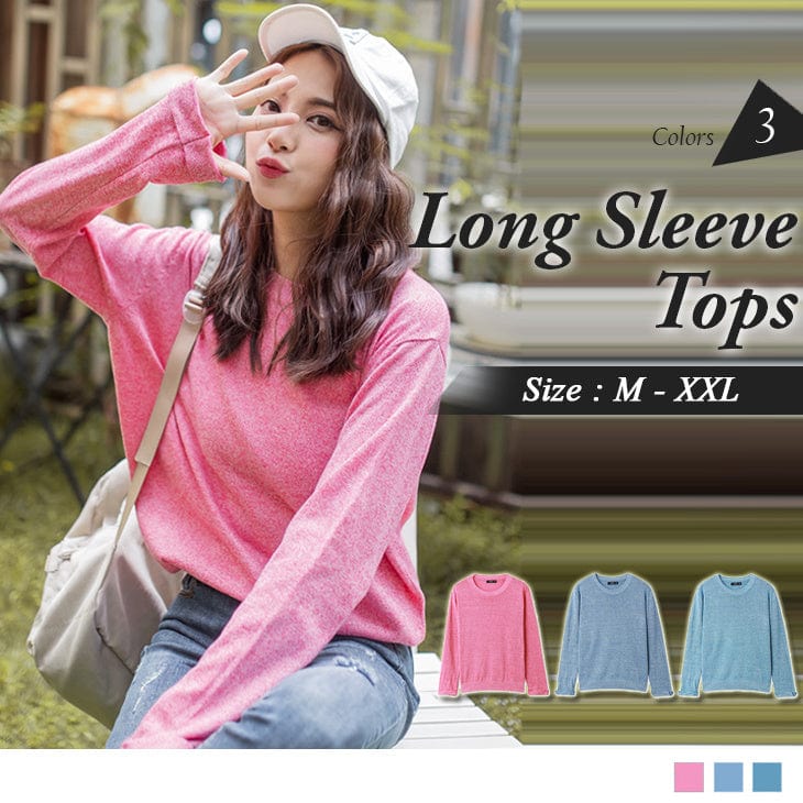 PLEAT LONG SLEEVE ROUND NECK KNIT TOPS