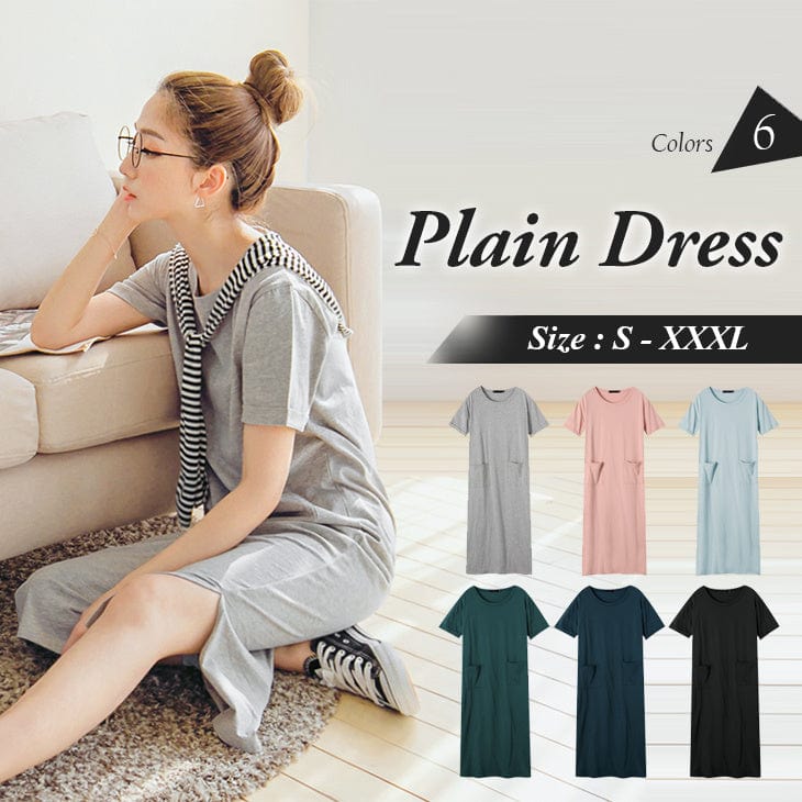 PLAIN DOUBLE POCKETS SIDE SLITS DRESS