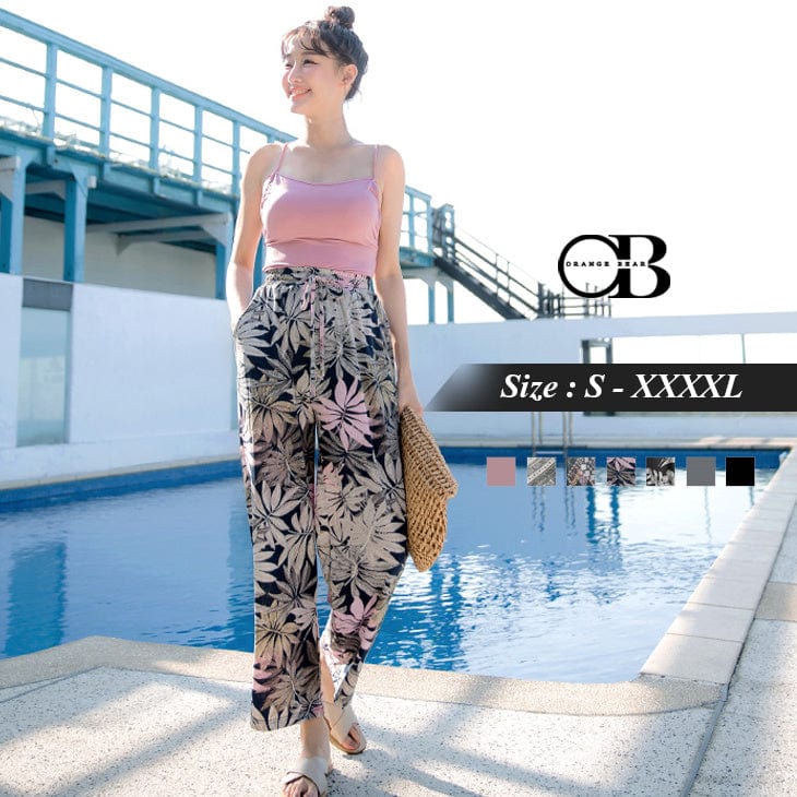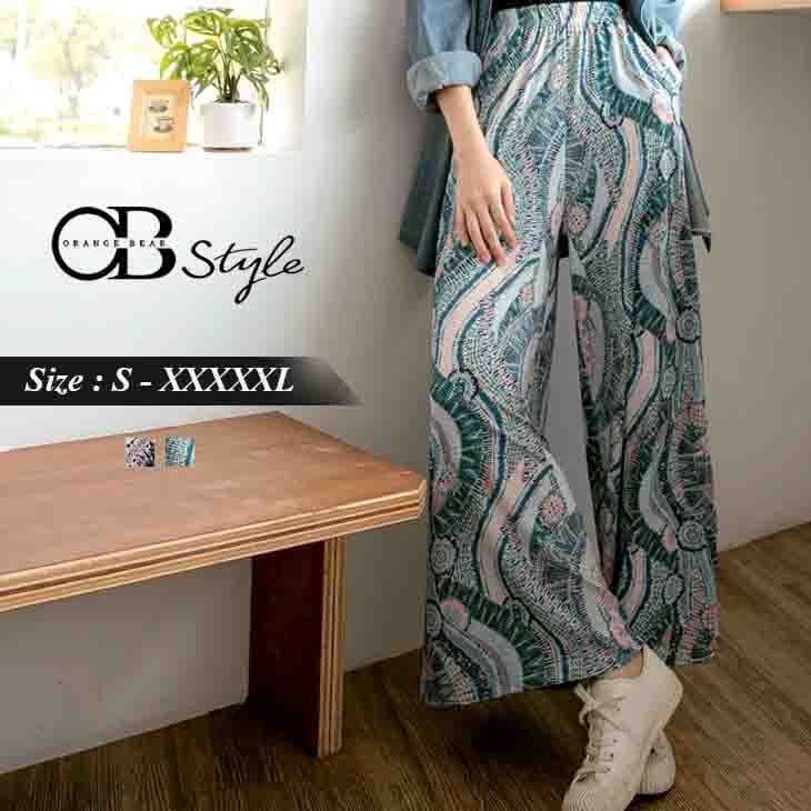 PRINTED WAIST ELASTIC WIDE PANTS