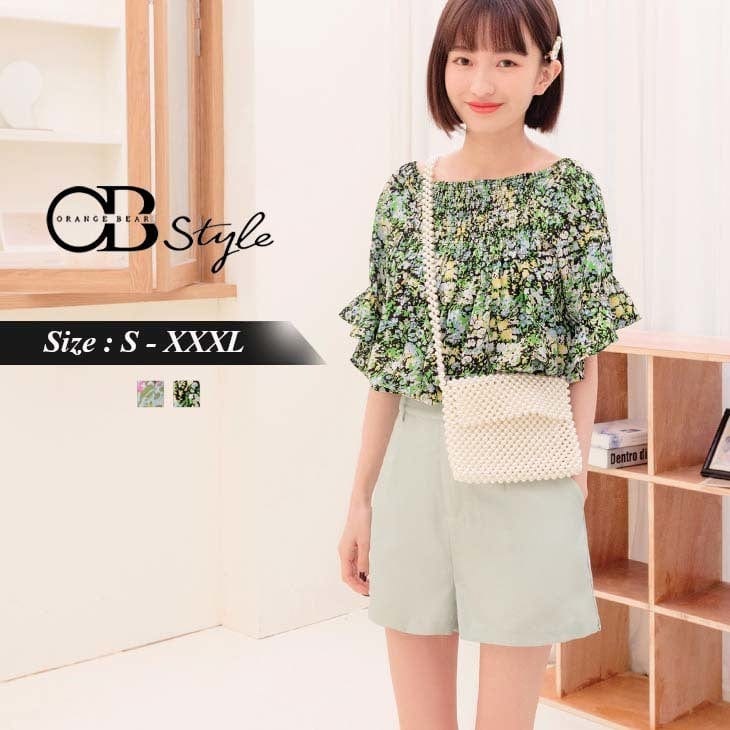 OFF SHOULDER PRINTED RUFFLE SLEEVE CHIFFON TOPS