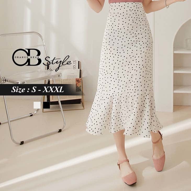 POLKA DOTS CHIFFON A-LINE FISH TAIL MAXI SKIRTS