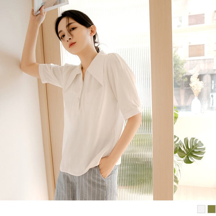PUFF SLEEVE COLLARED SHIRTS TOPS