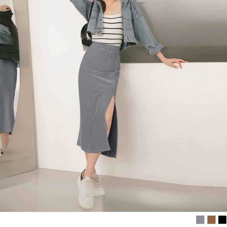PIT STRIPE ELASTIC WAIST TUNIC A-LINE SKIRTS