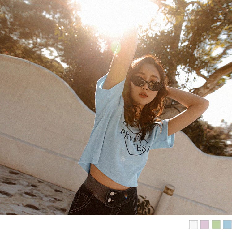 PIT STRIPE LOVE ENGLISH PRINTED CROP TOPS