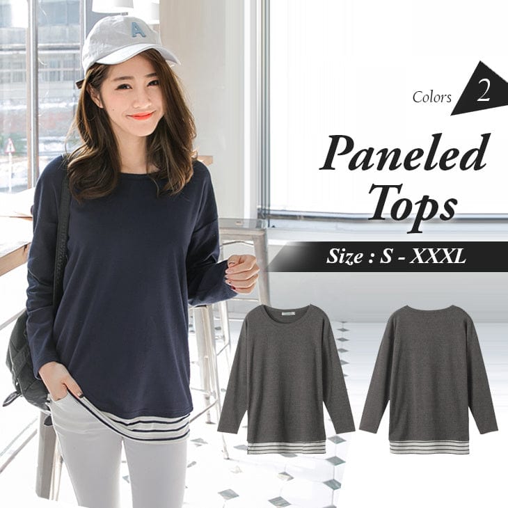 PANELED STRIPED ROUND NECK TOPS