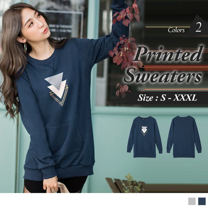 LONG SLEEVE LONGLINE PRINTED SWEATERS