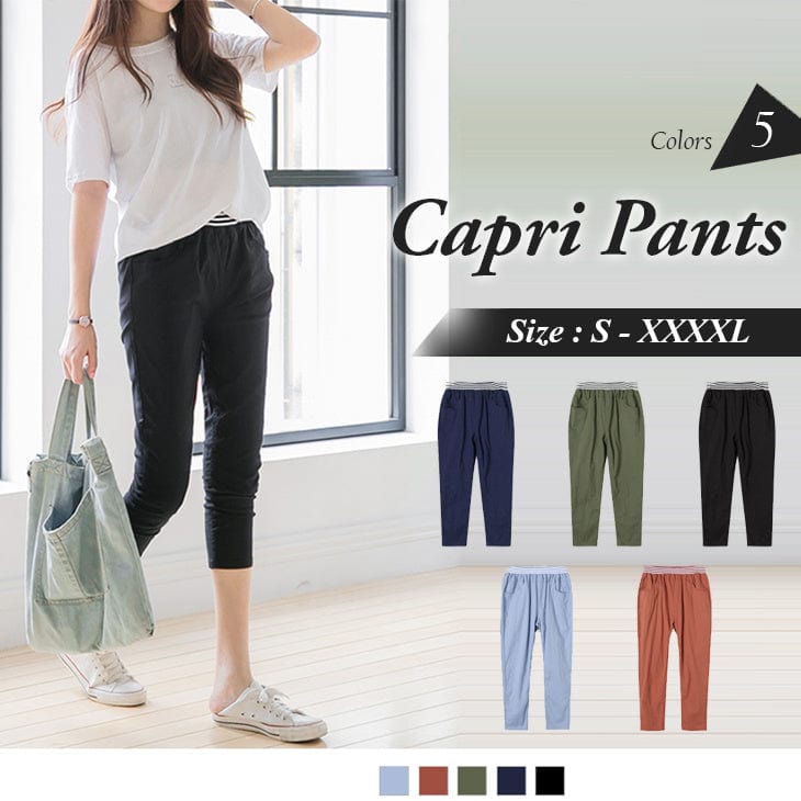 MULTICOLOR DRAWSTRING STRETCHABLE CAPRI PANTS