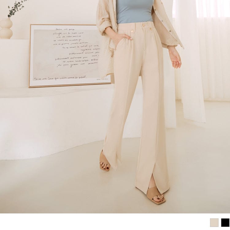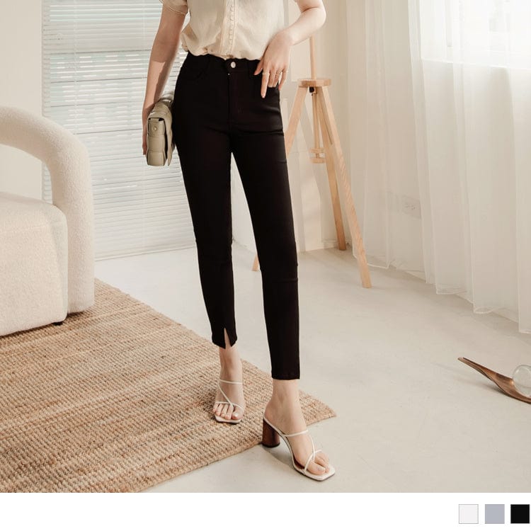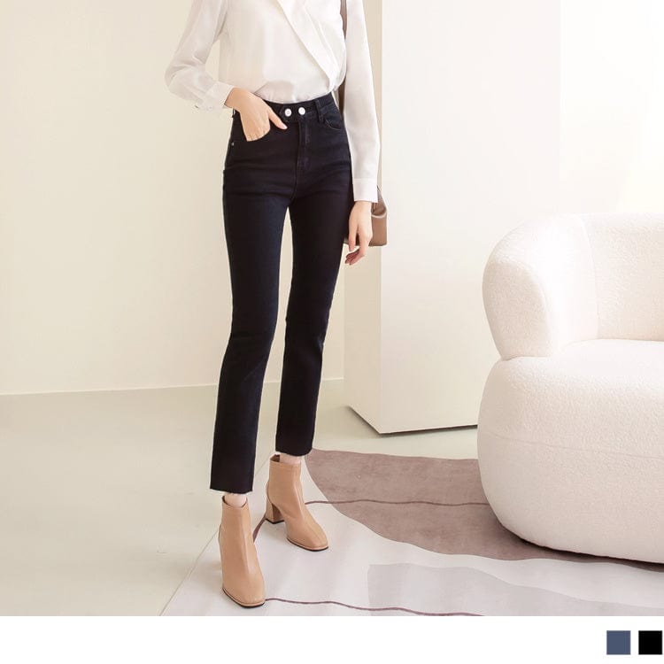 MEDIUM WAIST COTTON BUTTON SKINNY LONG PANTS