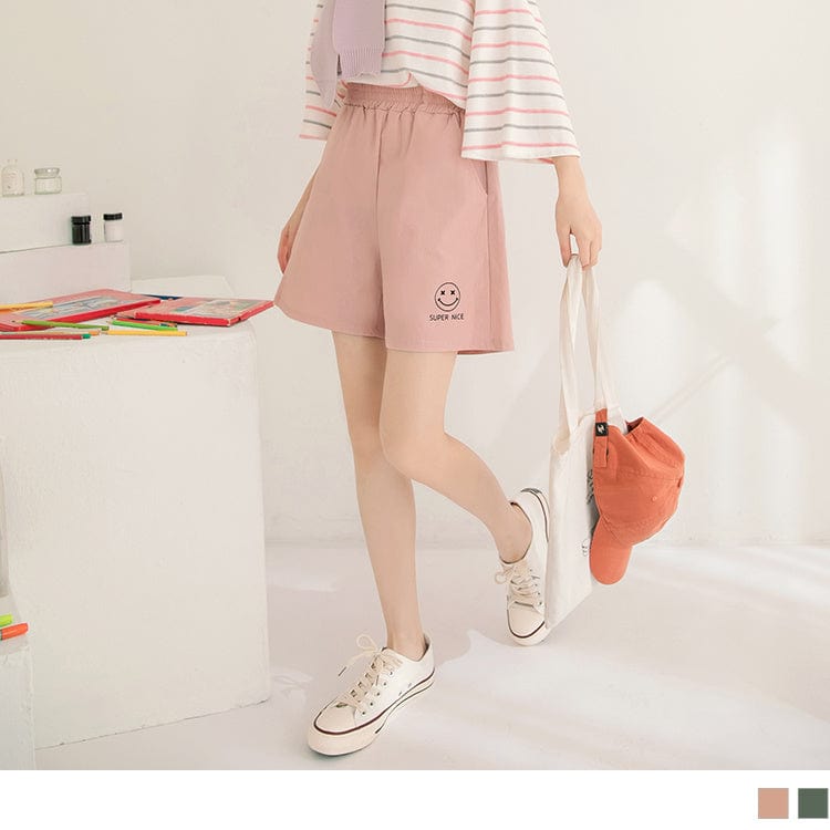 MEDIUM WAIST SMILE PRINTED WIDE LEG SHORTS