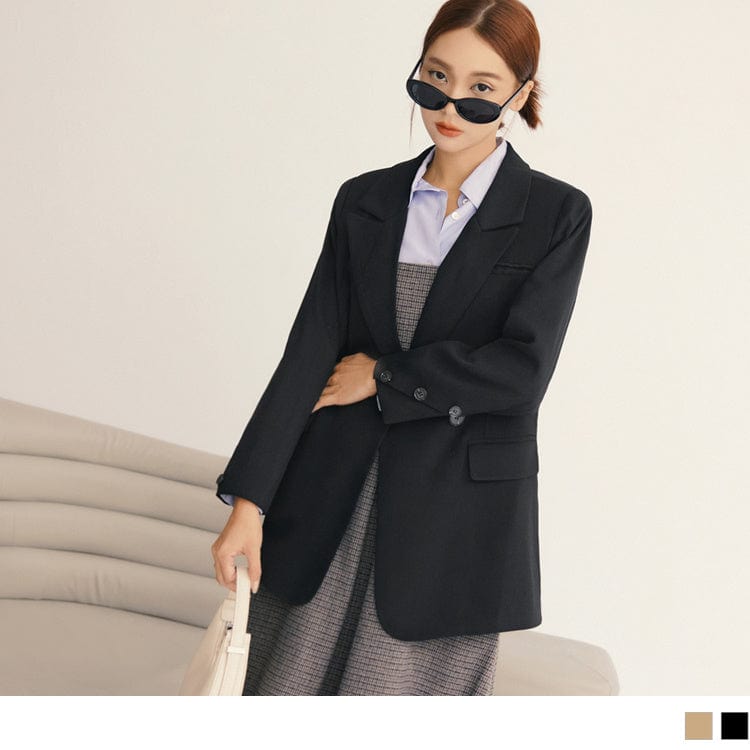 LONGLINE TUNIC BUTTON SUIT COLLAR SUIT JACKETS