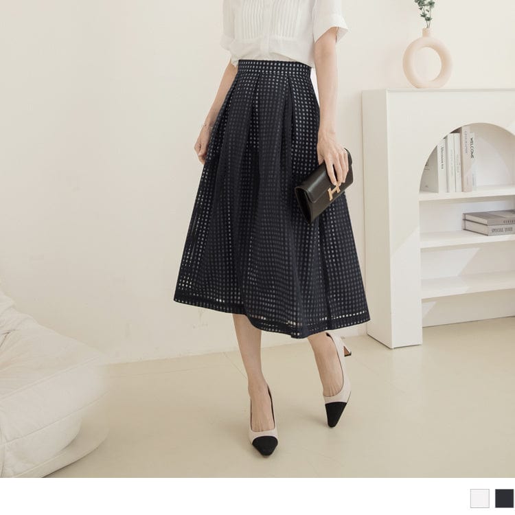 MEDIUM WAIST CHECKED PLEAT MIDI SKIRTS