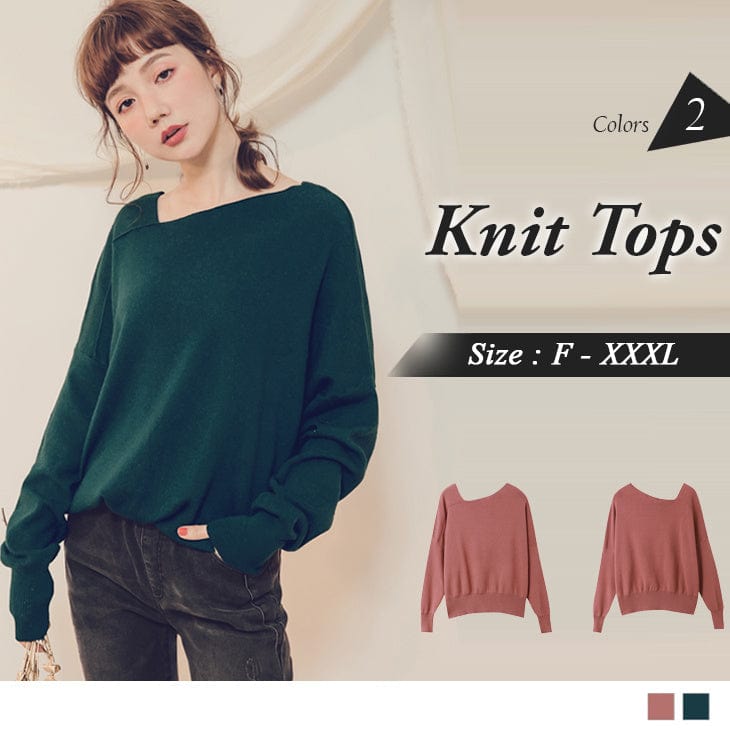 LONG SLEEVE ASYMMETRIC COLLAR CORN YARN KNIT TOPS