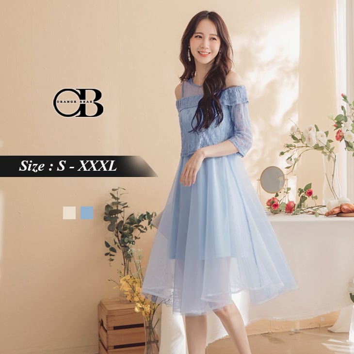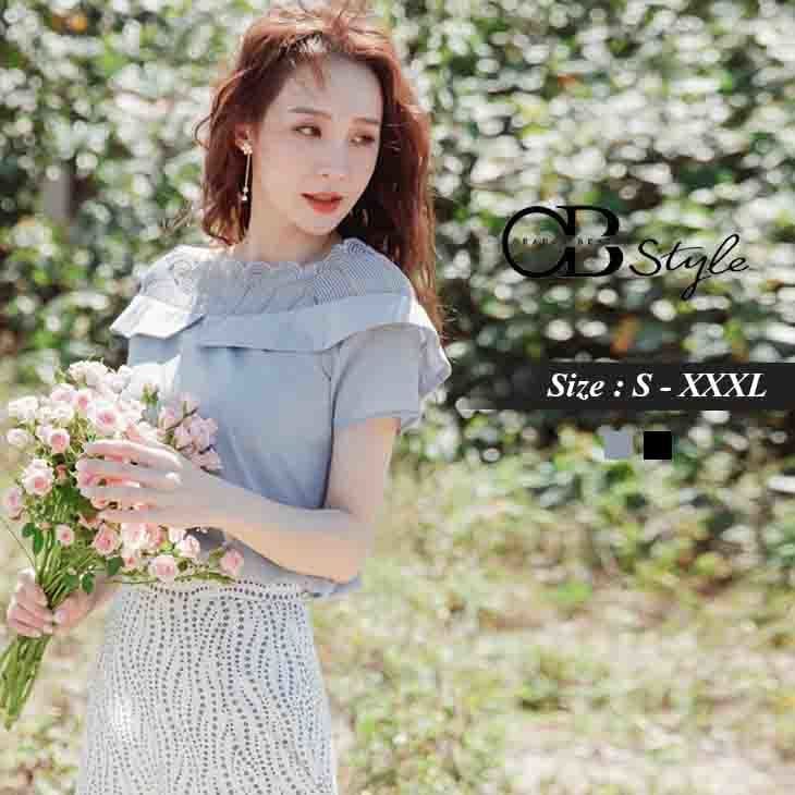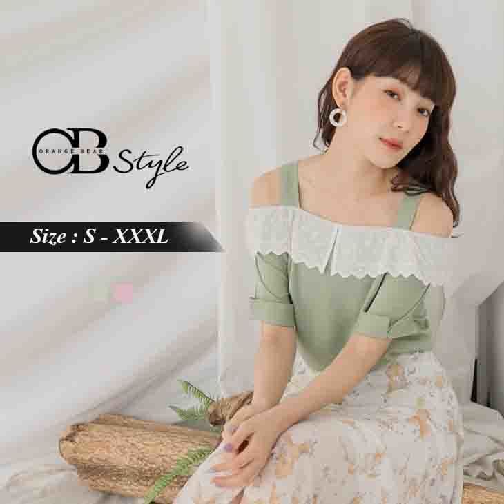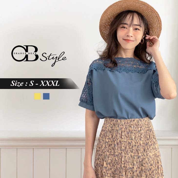 LACE OFF SHOULDER PATCHED CHIFFON SHORT SLEEVE TOPS