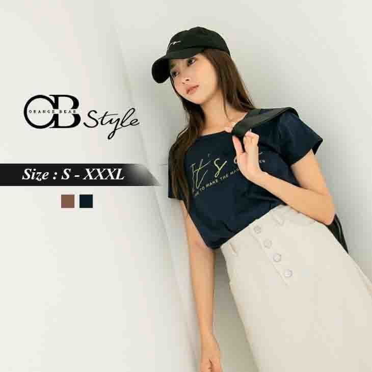 LETTER PRINTED SHORT SLEEVE COTTON ROUND NECK TOPS