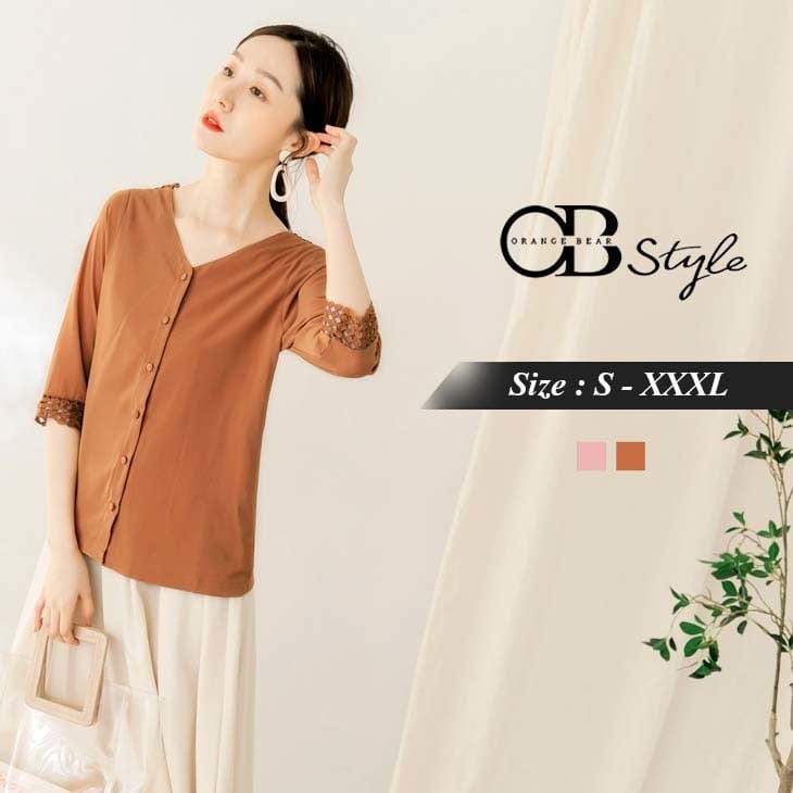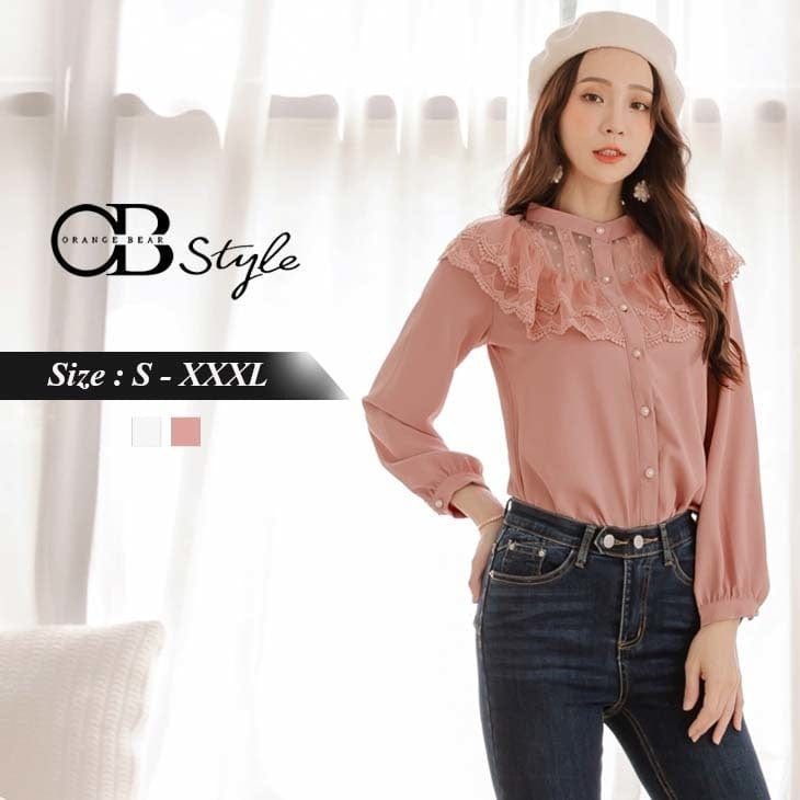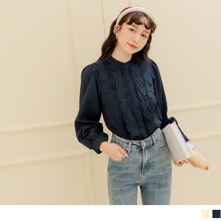 LACE PUFF SLEEVE LONG SLEEVE TUNIC BUTTON TOPS