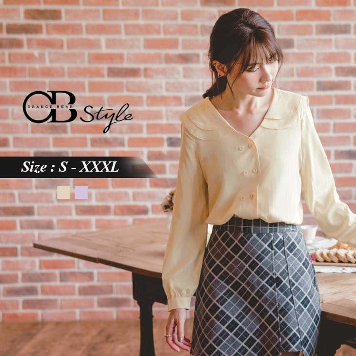 LONG SLEEVE BUTTONS DOUBLE LAYER COLLAR TOPS