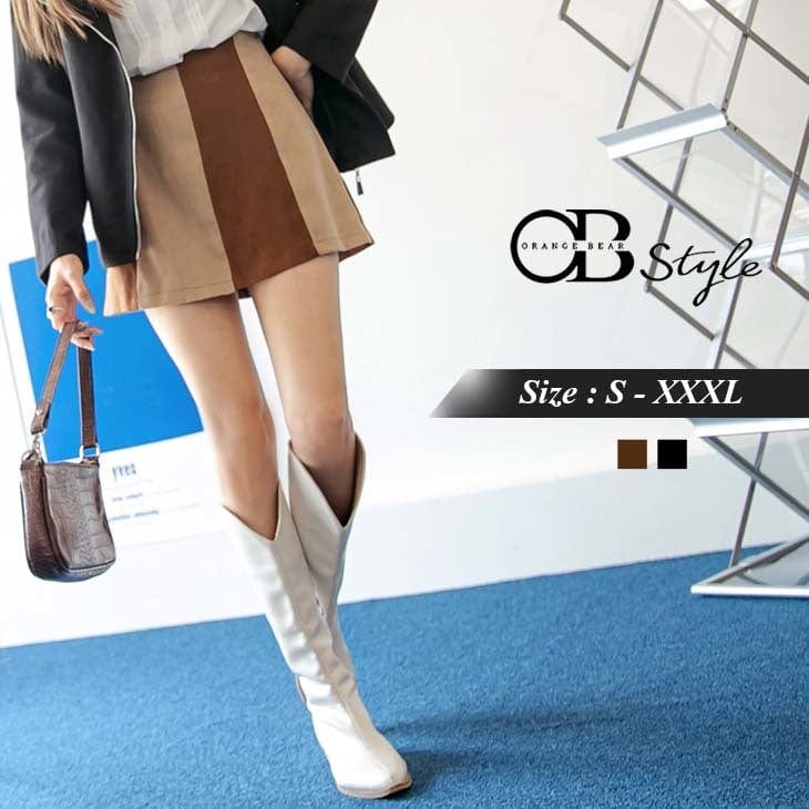 LEATHER PATCHED CONTRAST COLOR A-LINE MINI SKIRTS