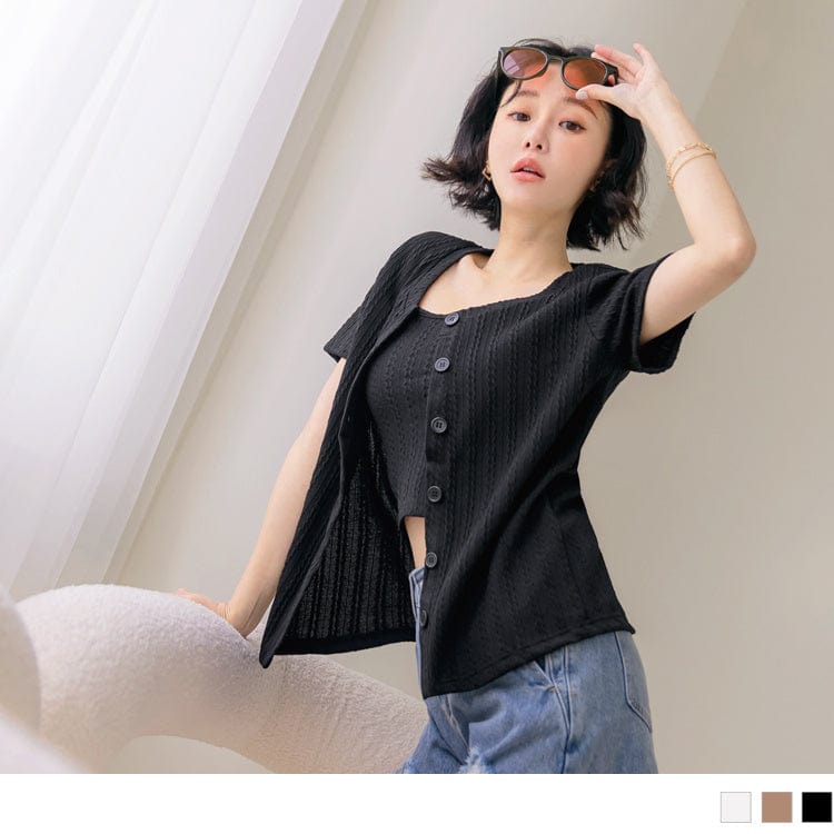 LAYERED-LOOK BUTTON SLEEVELESS TUNIC CARDIGANS