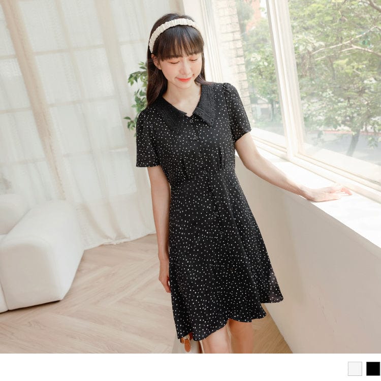 LACE PRINTED BUTTONS TUNIC POLKA DOTS MIDI DRESS