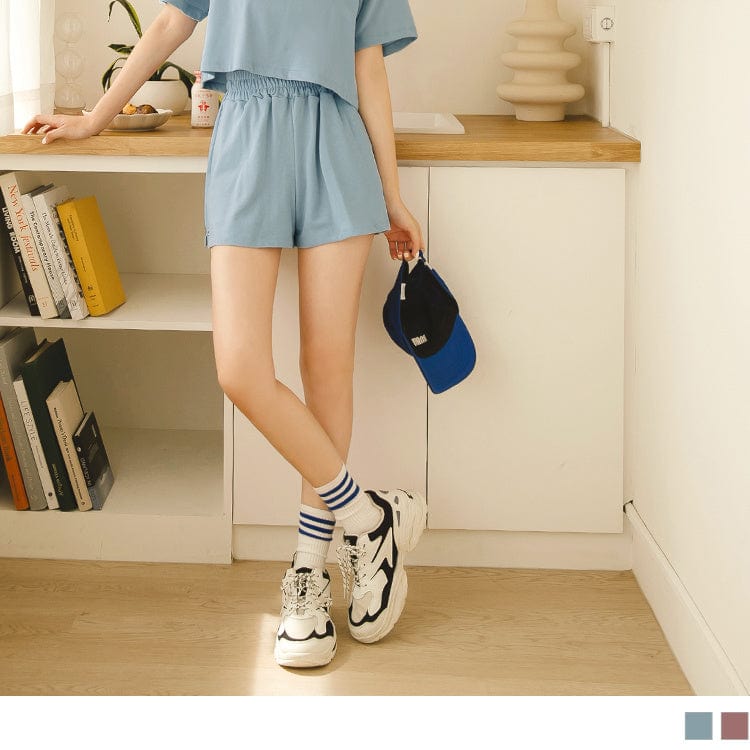 LETTER EMBROIDERED ELASTIC WAIST TUNIC SHORTS