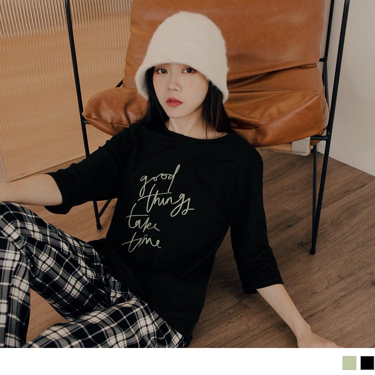 LETTER PRINTED 3/4 SLEEVE ROUND NECK TOPS